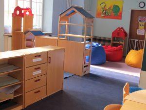 Es gibt je einen Ess-, Spiel-, Bastel – und Toberaum: